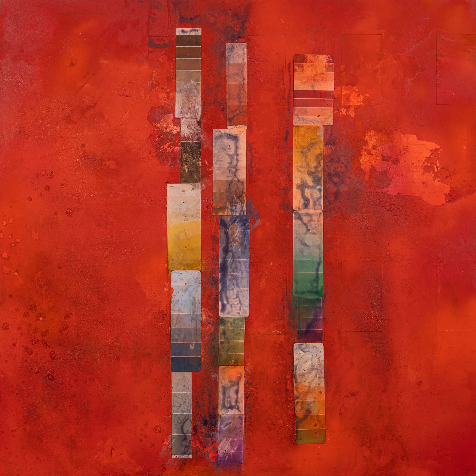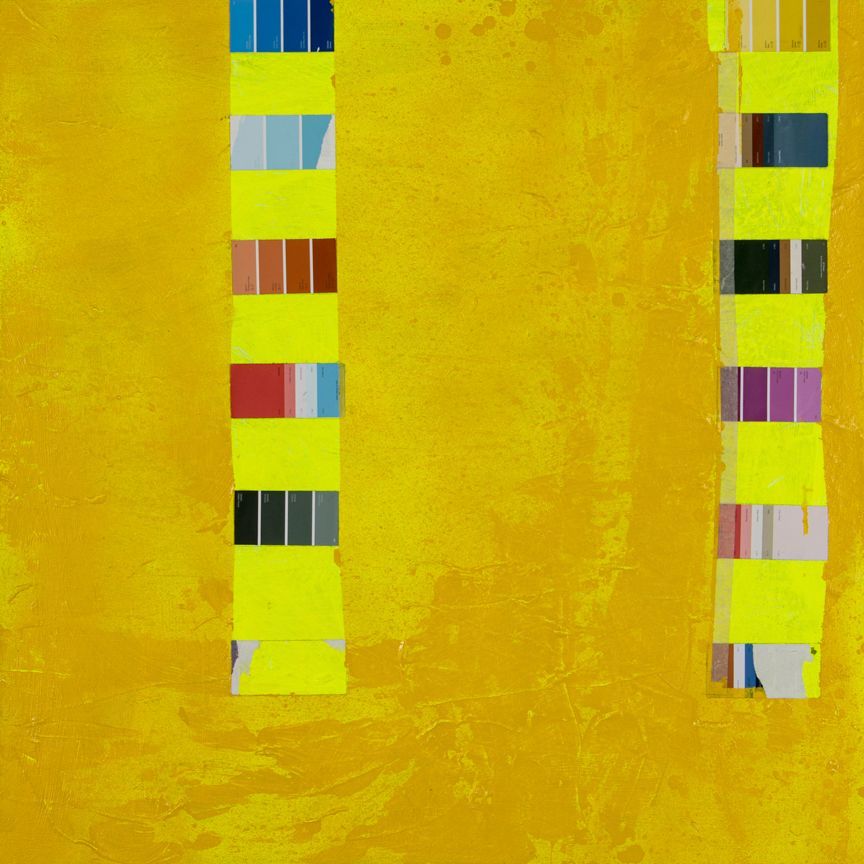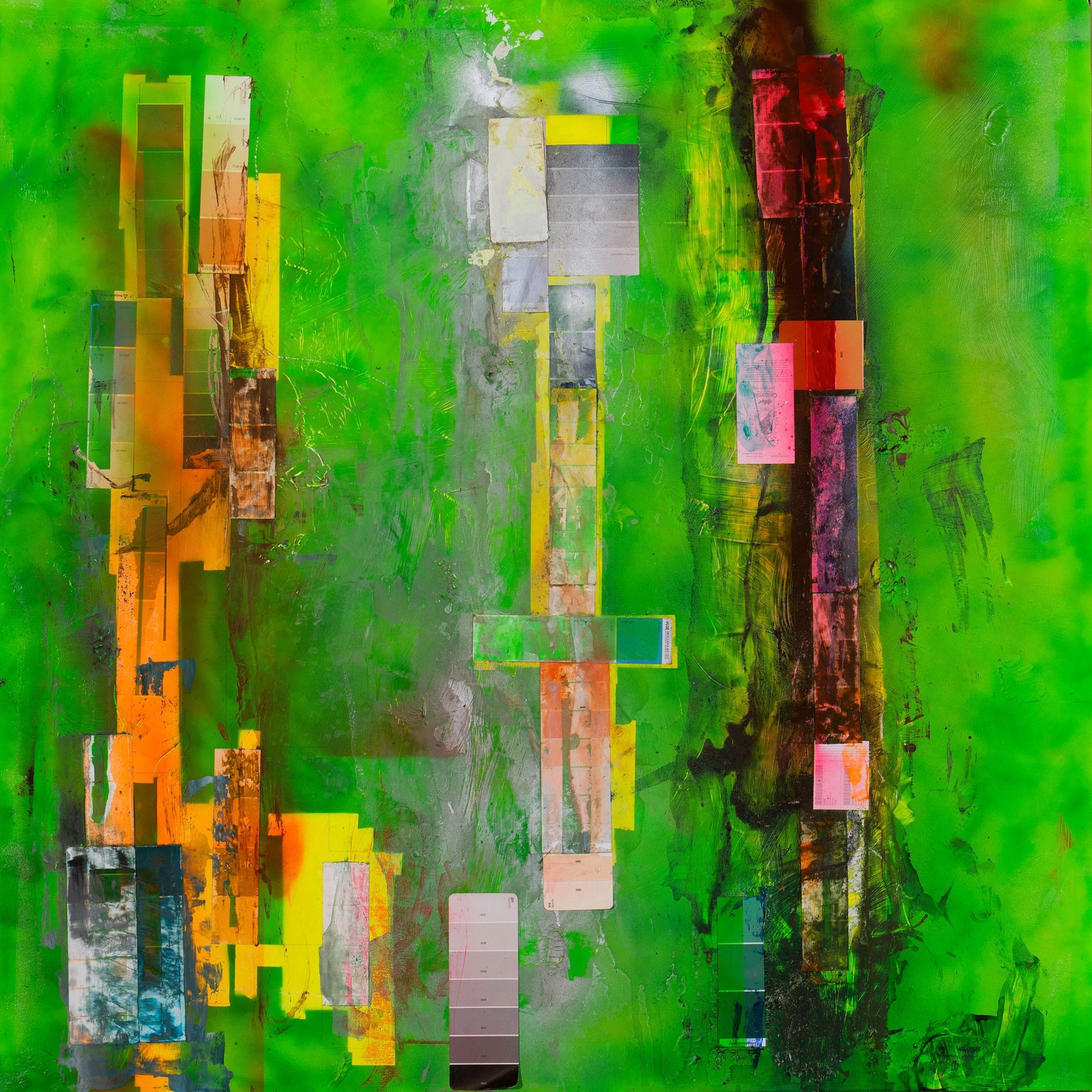 2024, collage and lacquer on aluminum, 48 x 48 in