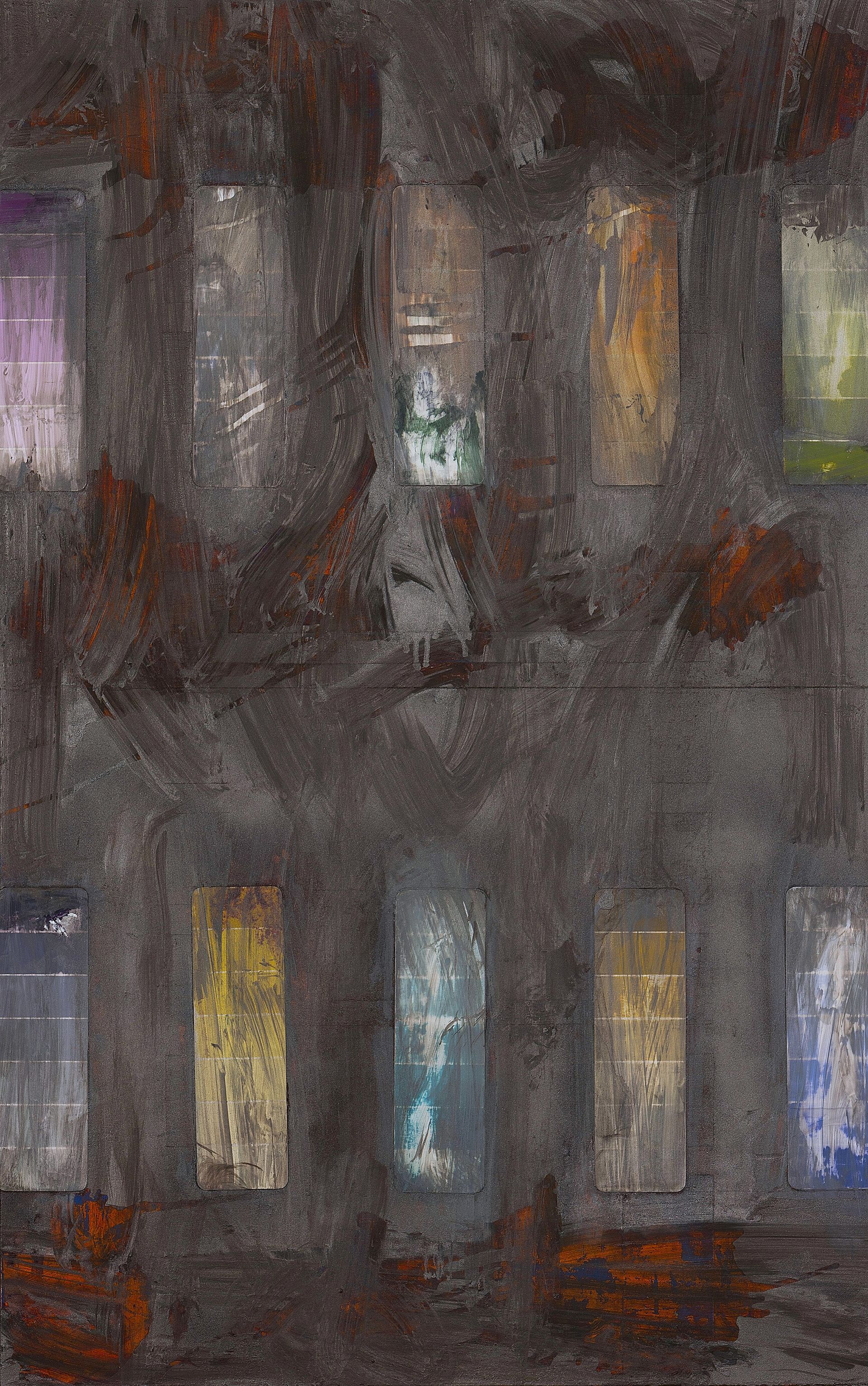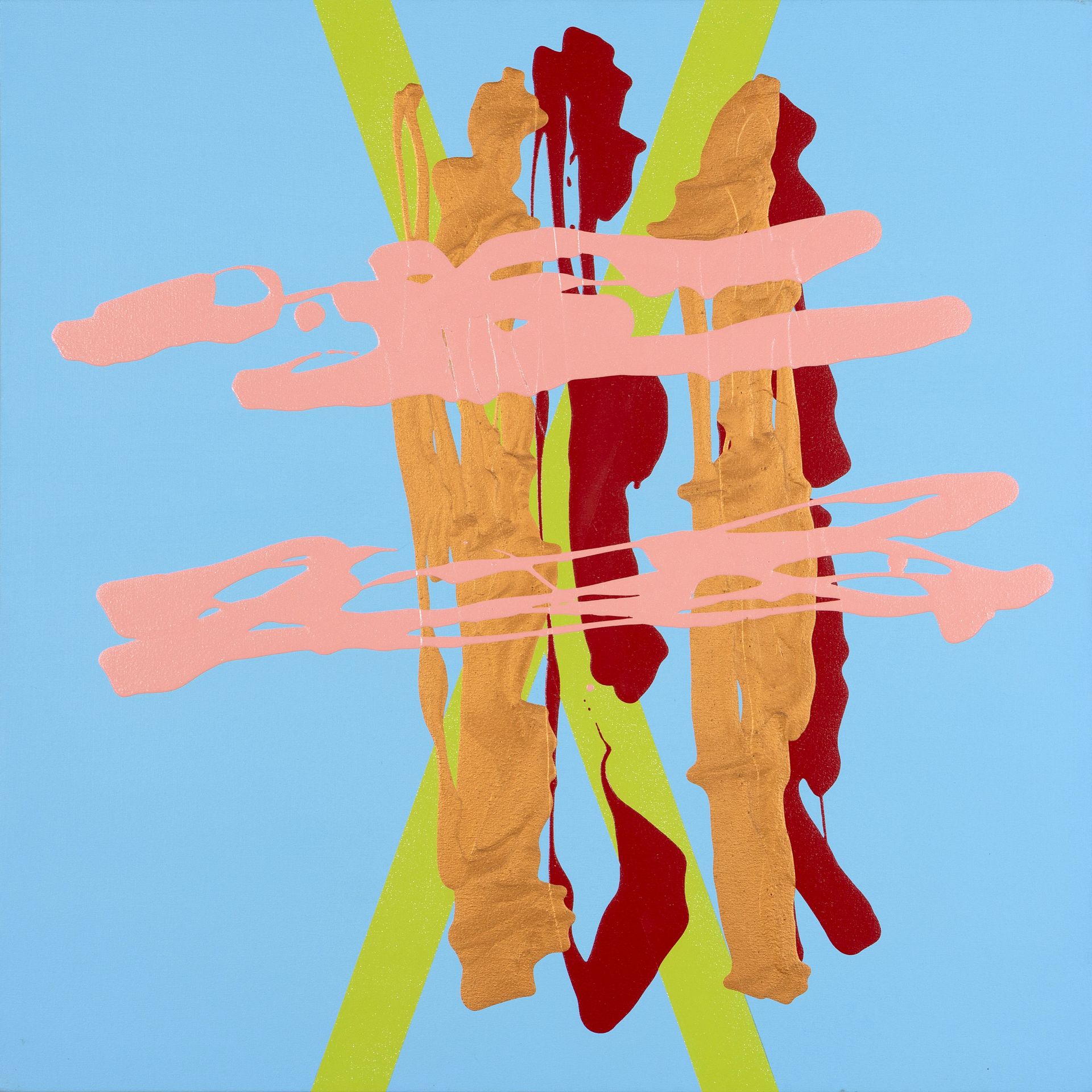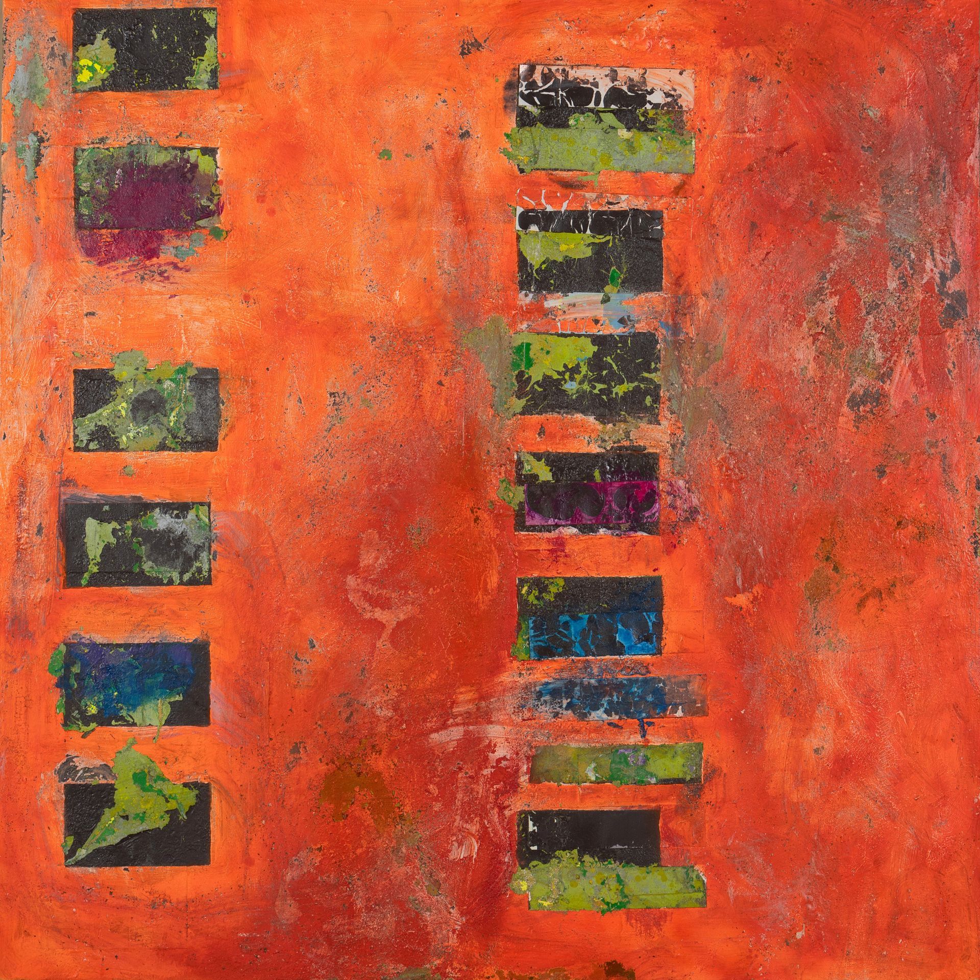 2024, collage and lacquer on aluminum, 48 x 48 in