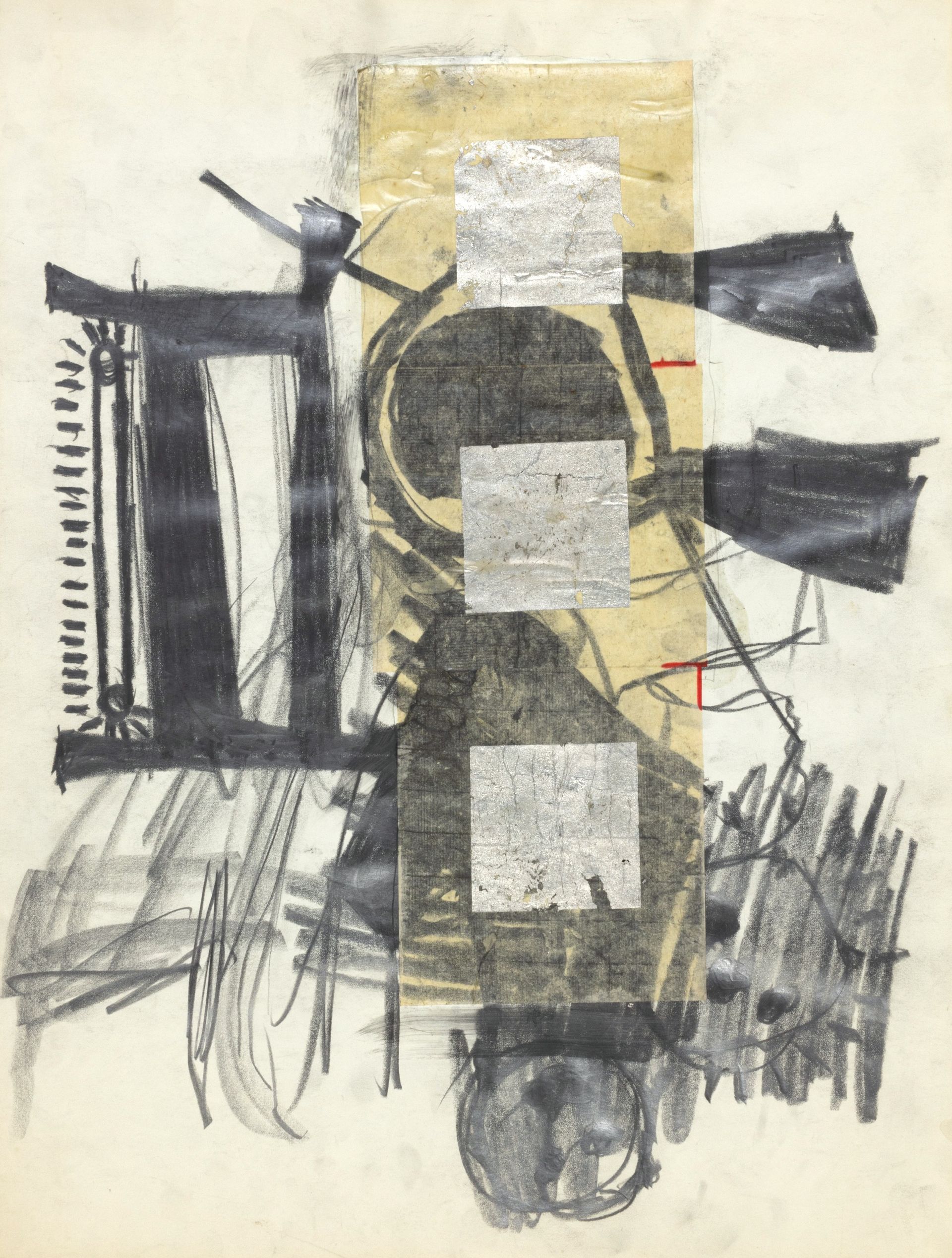 1985, graphite, collage and paint on paper, 35 x 23 in